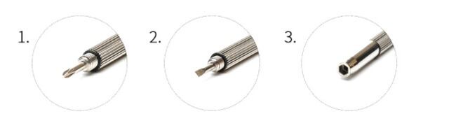プラスドライバー、マイナスドライバー、六角ナット回しの3つの機能で眼鏡の調整だけでなく、