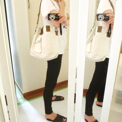 *肩掛け用のストラップとソフトハンドルがついているので、肩掛け・斜め掛け・手提げと、3つの持ち方が出来て使いやすいです。