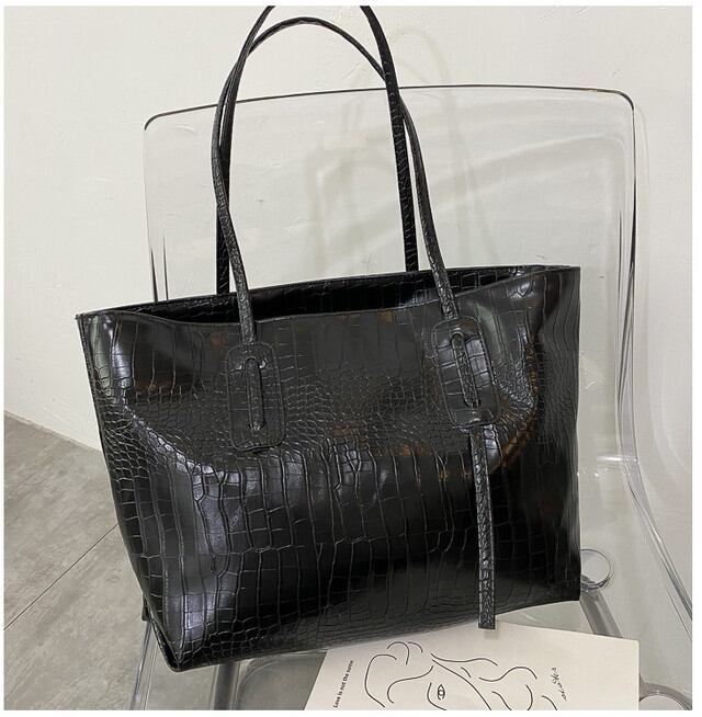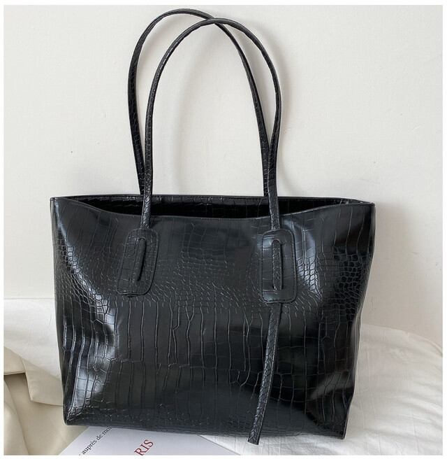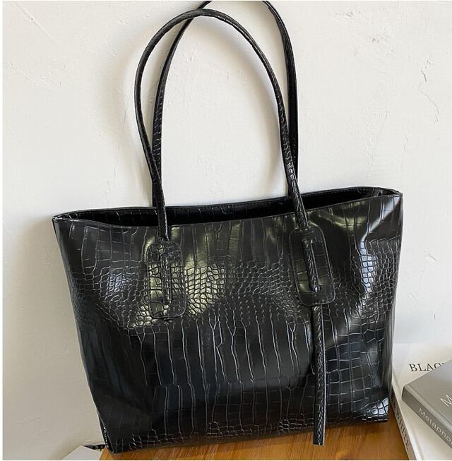 高級バッグに多く使われるクロコ素材を型押しで表現したPUレザートートバッグ。