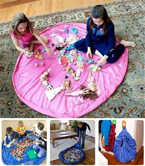 マットで遊んで、おかたづけは紐を引っ張るだけ、簡単収納